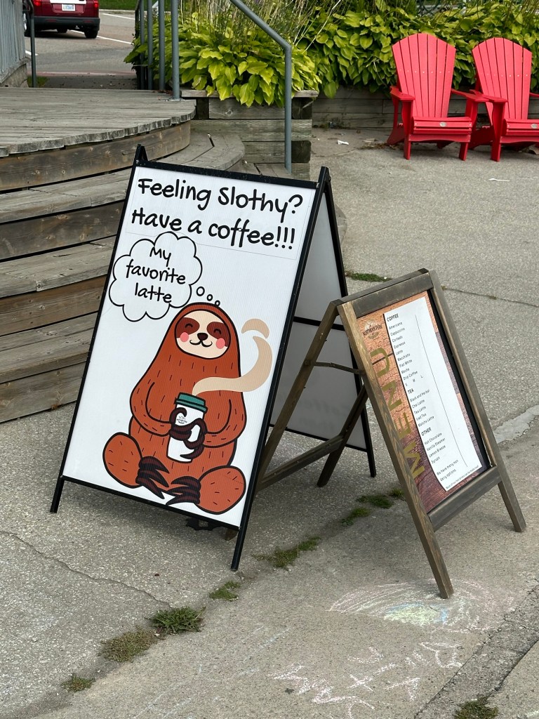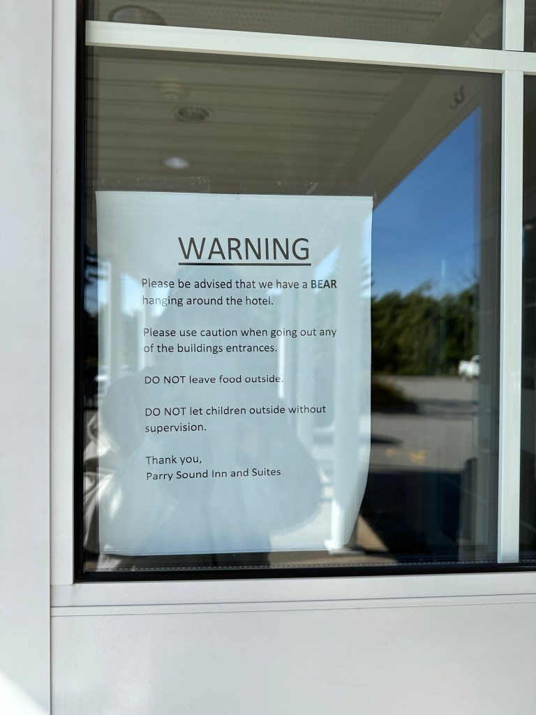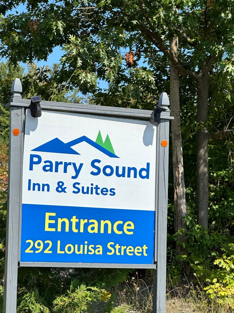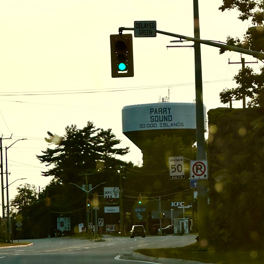 Couldn’t resist taking a photo from car when we arrived in Parry Sound even though awful quality. Can you even read the sign?