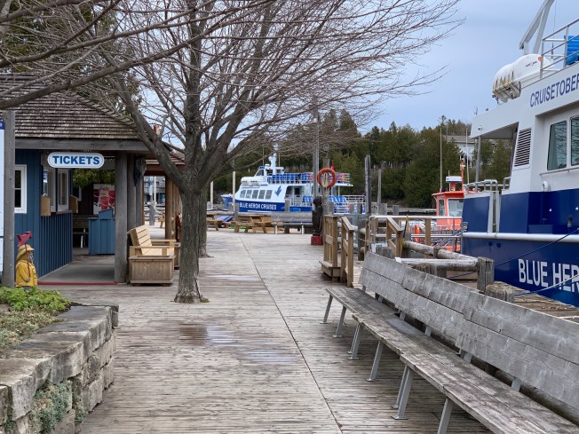 There are various cruise ships out to Flower Pot Island and glass-bottom boats to look at shipwrecks. It’s very early in the season so only one is running right now. Here are two waiting the season to open.