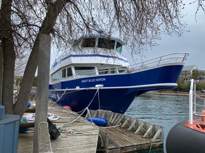 I noticed a large crane moving a ship off dry dock and into the water. It soon became apparent it was moving one-by-one down the dock getting these large vessels into the harbor for the 2019 season.