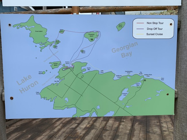 I stopped at the ferry office to find all this out. It doesn’t even say the name of the company, Ontario Ferries, on the building, but reads Owen Sound Transportation Company. Good thing it’s a small town and I could figure it out.