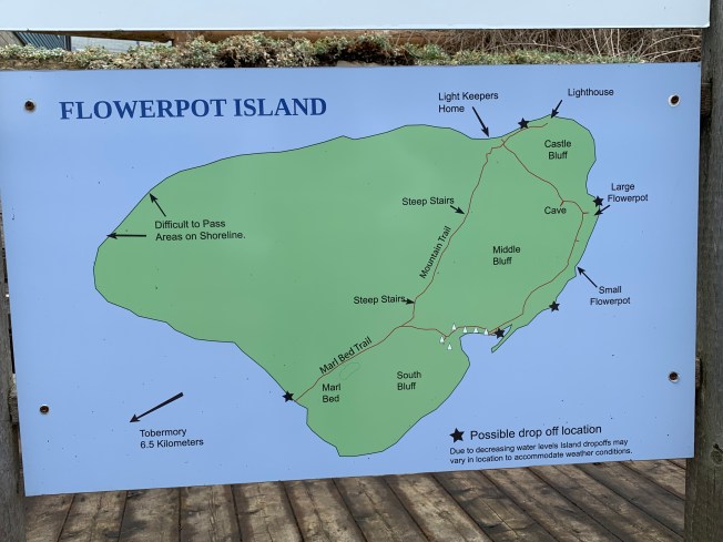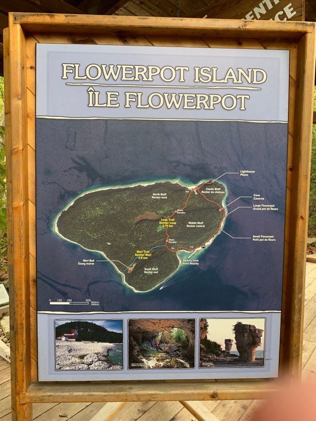 Here is a map of Flowerpot Island. This was the first place we took wildflower photos on the safari. We lay on the ground to capture images of exquisite dainty lady slipper and other orchids.