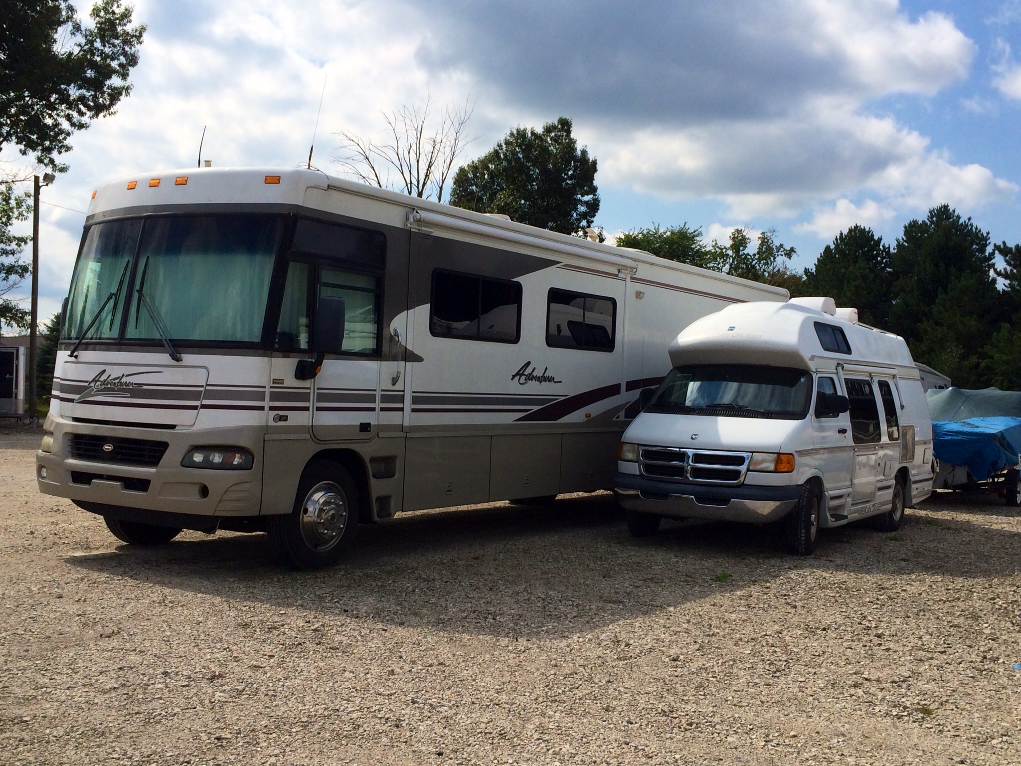 What a day. I did a few things here in the morning and filled up my car with another load. I drove to the storage facility and pulled out Ecovision and put my Honda in her place. I unloaded my car, but didn’t put anything away. Then it was a quick half-hour drive to Camping World in Belleville. Before I left I turned on my 3-way refrigerator (on DC) so it would start to cool down for my trip.