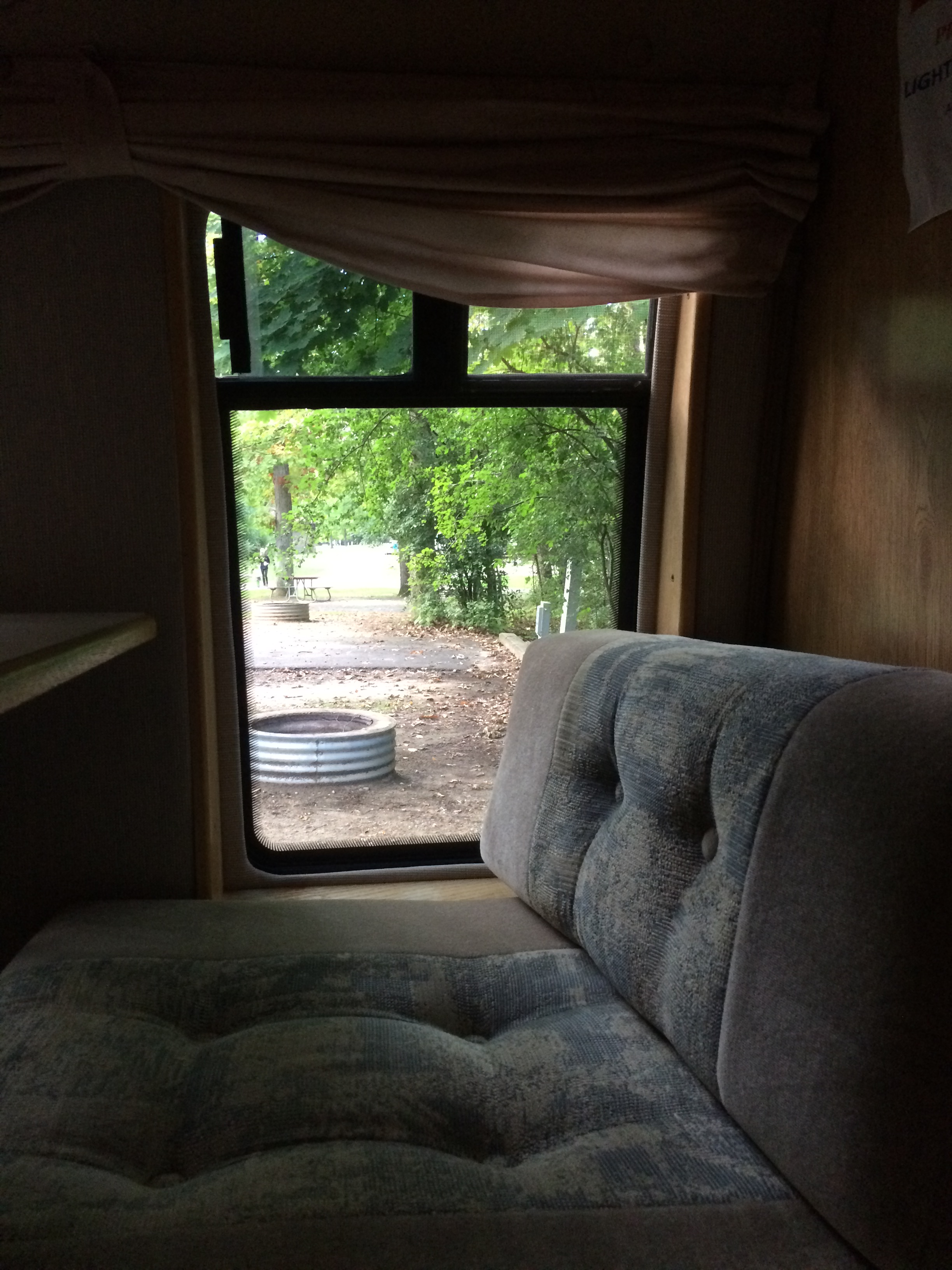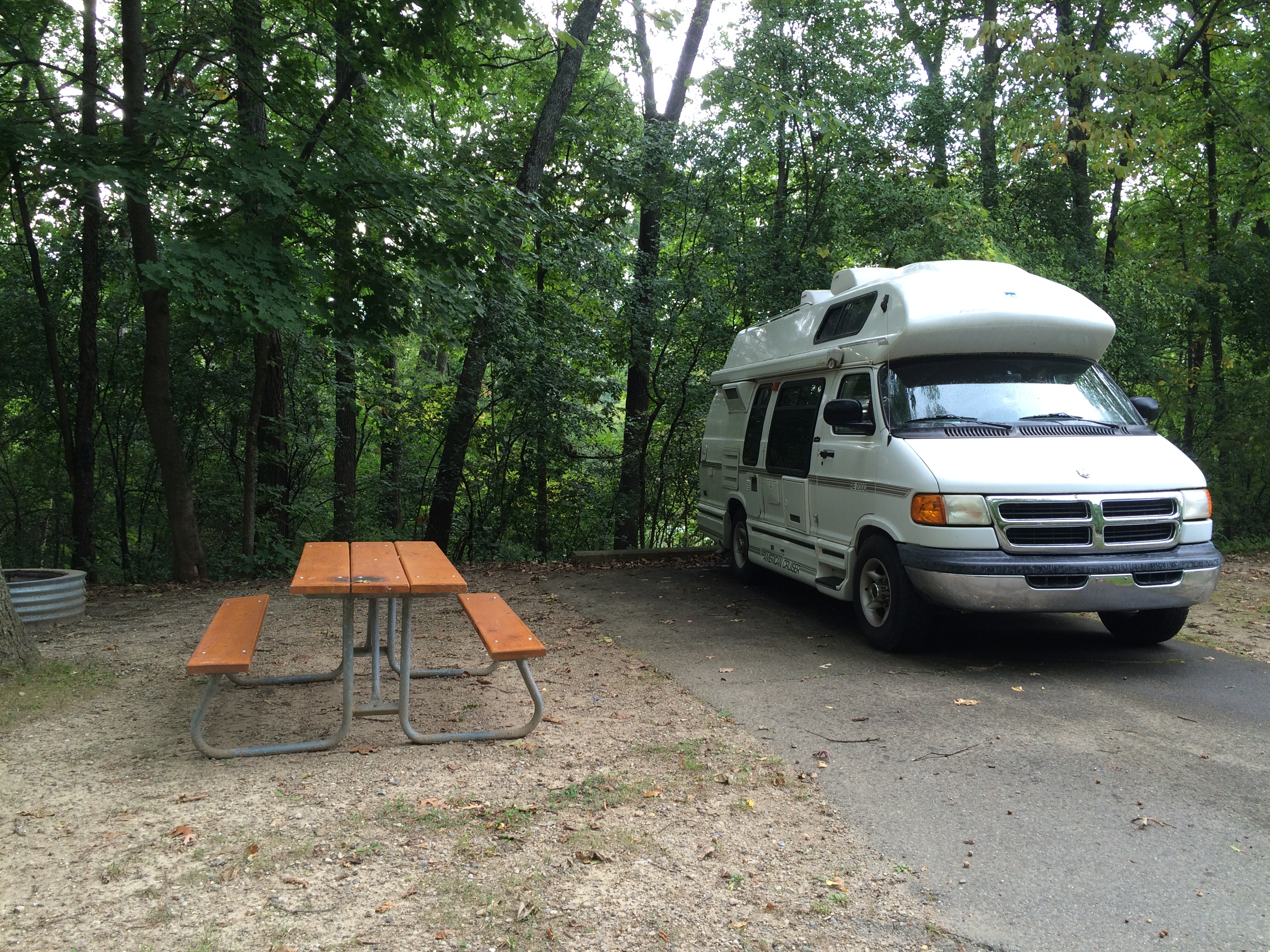 Finished packing up food, clothes and way too many electronics and off we went. It was quite windy, but we headed southwest on Michigan Avenue (M-12) right into the wind so driving was manageable. It started raining about five miles away from Hayes State Park where we were going to stay for the night. Oops, the rubber blades on my windshield washers were awful! Useless, actually. Amazingly there was a gas station right across the street from the turn into Hayes State Park. Nevertheless I was filled with dread because unlike the gas stations of the 50s and 60s when actual mechanics ran them and could always help fix things, I knew chances of my getting help were slim to none. And that’s what I found. The two woman were helpful but knew little. The gas station was filled with row after row of snacks and drinks. Fortunately they did have the 18″ blades and two were only $6.13 for the pair! Then a nice young man filling his truck with gas came right over and put them on for me. I told him was an angel and I so appreciated his help.