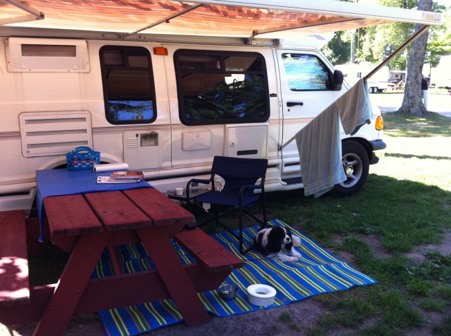 I continued south of MN-61 the mile or so back to the campground. I had plenty of freshwater in my new tank so I just plugged in electric for the one-night stay. No black flies or even mosquitoes so Henry and I had a nice long walk before cozying up for the night.