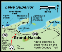 I stopped at Grand Marais with the intention of getting settled into my reserved space in the campground. As I posted previously, in the few moments I opened my door to check things out at the extremely small, tight space that I was assigned (and the last one available), I had black-fly issues. One black fly flew into Ecovision right onto my front window while another flew straight to my neck. I was able to squish both before they grabbed a chunk of skin off any part of me. Unfortunately, I strongly attract and strongly react to black-fly bites. I get red lumps the size of a quarter that hurt and persist for over a month. I had about a dozen of these in May while on photo safari in Tobermory, Ontario, so I knew I had to get out of there and did.