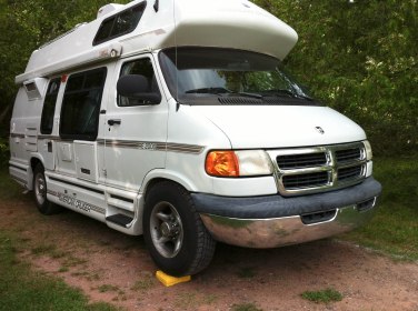 After dinner Henry and I walked around the marina then headed to the campground. I had to use blocks on one side to get level then I hooked up the water and electric. Each campground and campsite is different so each time it takes some juggling. RVing is amazingly physical. But we’re all cozied up and now it’s time for bed. I’ll leave you with a photo of Ecovision, who likes to have her picture taken in pretty places like Eagle Harbor :-)