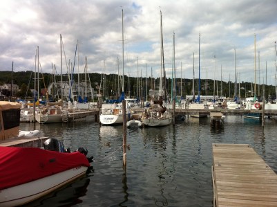 After checking out my site, I drove to Bayfield and bought a ticket for the “Grand Tour” of the Apostle Islands tomorrow. It begins at 10 a.m. and takes three-and-a-half hours. Weather is supposed to be great and this tour gets out to the most number of islands. I’ll leave Henry in town in Ecovision on a shady street and try not to worry. My focus will be on taking photographs and notes and just experiencing the archipelago. Oh, I so love being on the water like I did so many summer weekends on Lake St. Clair with my Dad (and later me) at the helm of our small wooden powerboat.